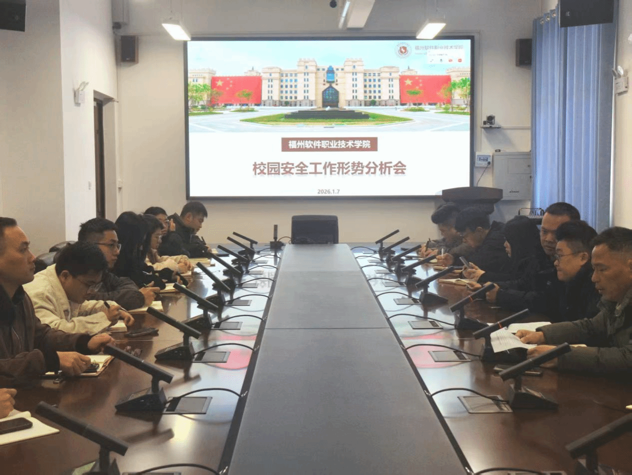2026年1月7日上午,我校在行政楼208会议室召开校园安全工作形势分析会。校党委副书记林艺勇主持会议并讲话。安全保卫部、学生工作处负责人,各学院党总支书记、副书记、分团委书记及全体政工人员参加会议。